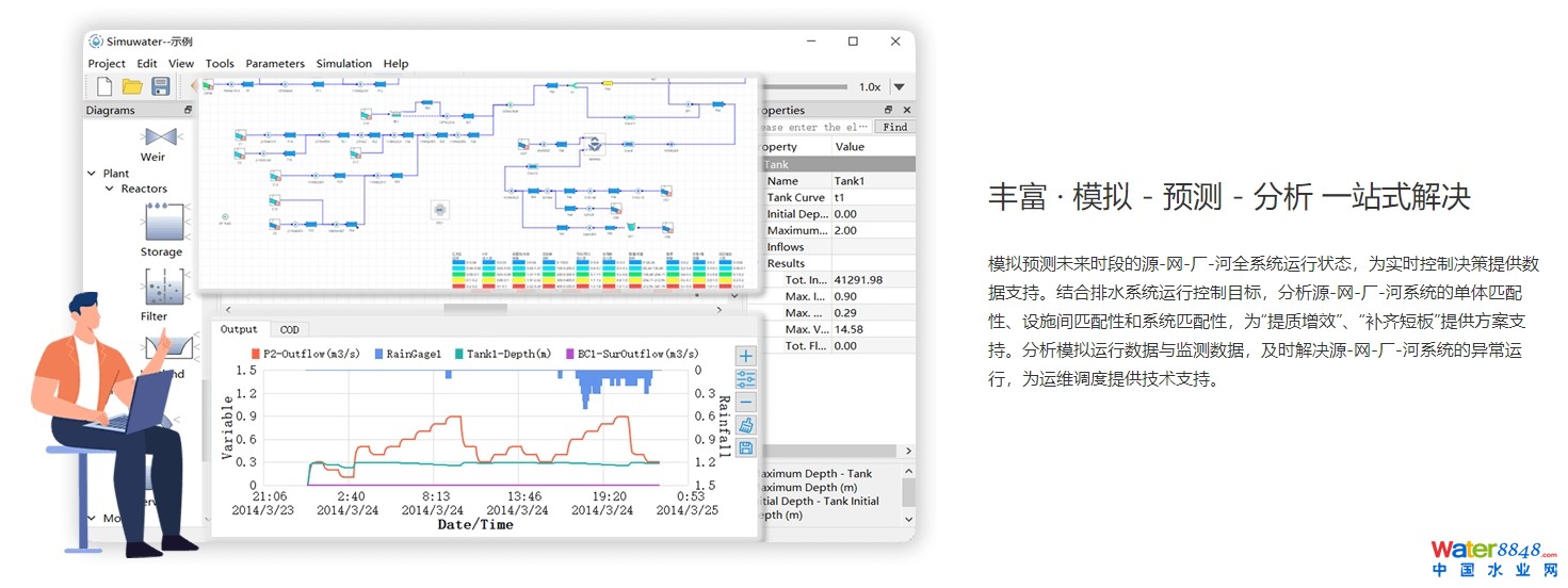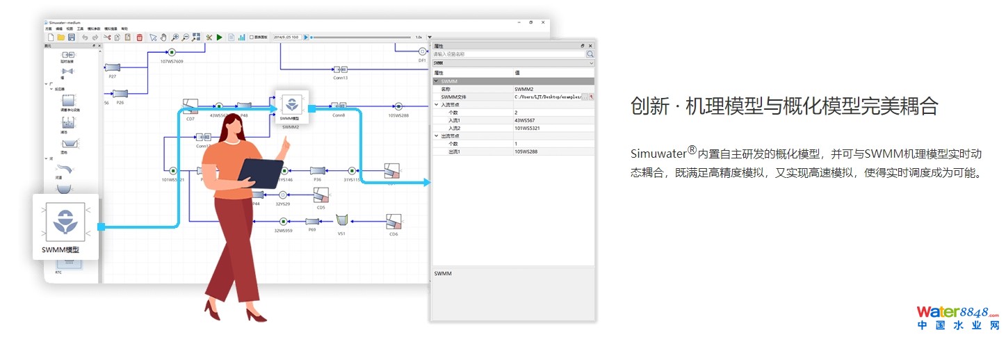 城市水系統(tǒng)控制仿真軟件(Simuwater®)是立足于中國(guó)市政華北總院多年水環(huán)境治理經(jīng)驗(yàn)和國(guó)內(nèi)外排水系統(tǒng)模擬發(fā)展最新技術(shù)和理念開(kāi)發(fā)的分布式水文、水力和水質(zhì)模型,是國(guó)內(nèi)首個(gè)實(shí)現(xiàn)“源-網(wǎng)-廠-河”水量和水質(zhì)耦合模擬的多要素集成模型;是國(guó)內(nèi)首個(gè)可用于水系統(tǒng)輔助規(guī)劃設(shè)計(jì)和實(shí)時(shí)智能控制的多用途模型。