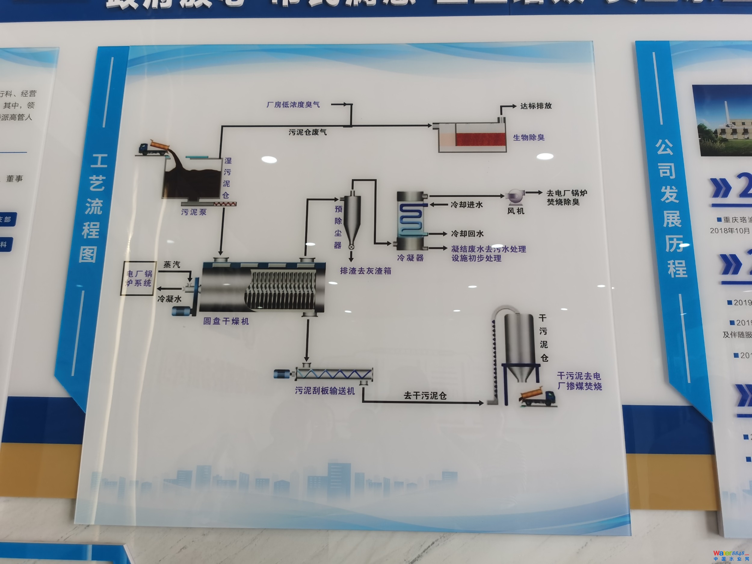 而在污泥處理過程中的高濃度廢氣則通過負壓抽吸系統(tǒng)直接送入電廠鍋爐高溫焚燒,實現(xiàn)完全分解,低濃度廢氣輔助以生物除臭系統(tǒng)進行處理,車間現(xiàn)場幾乎聞不到任何臭味。干化產(chǎn)生的廢水則由配套建設(shè)的污水處理站進行預(yù)處理,并通過市政管網(wǎng)送入珞璜工業(yè)園區(qū)污水處理廠進行深度處理。