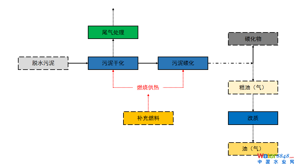 (2)污泥碳化產(chǎn)油(氣)工藝