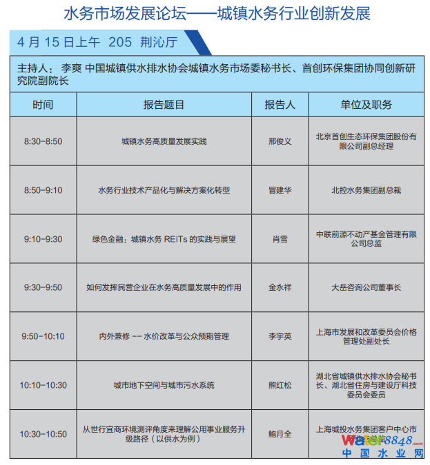 水務(wù)市場發(fā)展論壇——城鎮(zhèn)水務(wù)行業(yè)創(chuàng)新發(fā)展 發(fā)布日期:2023