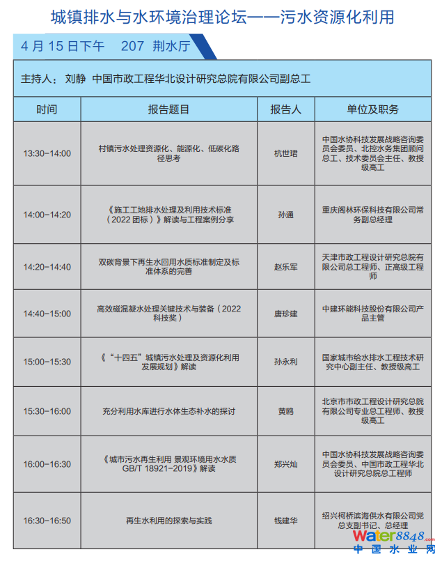 城鎮(zhèn)排水與水環(huán)境治理論壇——污水資源化利用 發(fā)布日期:202