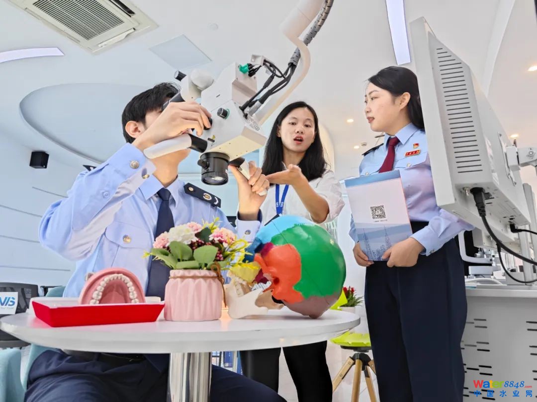 稅務(wù)人員在易維視成果展廳體驗裸眼3D技術(shù)在醫(yī)療、教育、文旅娛樂等場景的應(yīng)用,并宣傳輔導(dǎo)相關(guān)稅費優(yōu)惠政策。