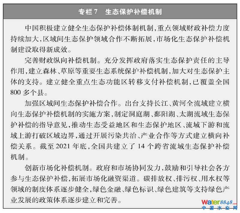 中國(guó)逐步建立完善政府有力主導(dǎo)、企業(yè)積極參與、市場(chǎng)有效調(diào)節(jié)的體制機(jī)制,更好激發(fā)全社會(huì)參與綠色發(fā)展的積極性。創(chuàng)新和完善節(jié)水節(jié)能、污水垃圾處理、大氣污染治理等重點(diǎn)領(lǐng)域的價(jià)格形成機(jī)制,實(shí)施50余項(xiàng)稅費(fèi)優(yōu)惠政策,引導(dǎo)優(yōu)化資源配置,支持促進(jìn)資源節(jié)約和高效利用,推動(dòng)綠色產(chǎn)業(yè)發(fā)展。建立統(tǒng)一的自然資源確權(quán)登記制度,在森林、草原、濕地、荒漠、水流、耕地等領(lǐng)域建立生態(tài)保護(hù)補(bǔ)償機(jī)制。探索建立生態(tài)產(chǎn)品價(jià)值實(shí)現(xiàn)機(jī)制,鼓勵(lì)支持社會(huì)資本參與生態(tài)保護(hù)修復(fù)。在科學(xué)合理控制總量的前提下,建立用水權(quán)、用能權(quán)、排污權(quán)、碳排放權(quán)初始分配和交易制度,開展全國(guó)碳排放權(quán)交易市場(chǎng)建設(shè)和綠色電力交易試點(diǎn)建設(shè),進(jìn)一步發(fā)揮市場(chǎng)在生態(tài)環(huán)境資源配置中的基礎(chǔ)性作用。大力發(fā)展綠色金融,形成綠色信貸、綠色債券、綠色保險(xiǎn)、綠色基金、綠色信托等多層次綠色金融產(chǎn)品和市場(chǎng)體系。截至2021年末,中國(guó)本外幣綠色信貸余額15.9萬(wàn)億元,綠色債券存量余額超過1.1萬(wàn)億元,規(guī)模均居全球前列。