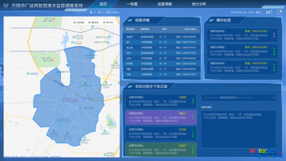 泰華智慧智慧排水管理平臺通過集成泵站、污水廠、管網等排水設施及運行數據,構建設施資產、雨水管控、污水管控業(yè)務體系,動態(tài)監(jiān)控從源頭到末端的雨污水排放全過程,對排水系統(tǒng)運行狀況進行診斷分析,有效識別排水系統(tǒng)存在的過載、溢流、淤積、錯接、非法入流等問題,結合排水設施的空間拓撲關系,綜合利用物聯網、大數據、模型模擬技術,建立污水廠-站-網智能調度模型,實現由經驗模式下的人工粗放調度向數字模式下的智能精細調度轉型,消除污水冒溢,穩(wěn)定污水處理廠進水量,實現排水系統(tǒng)運轉平衡,保障排水設施高效、安全、節(jié)能運行。