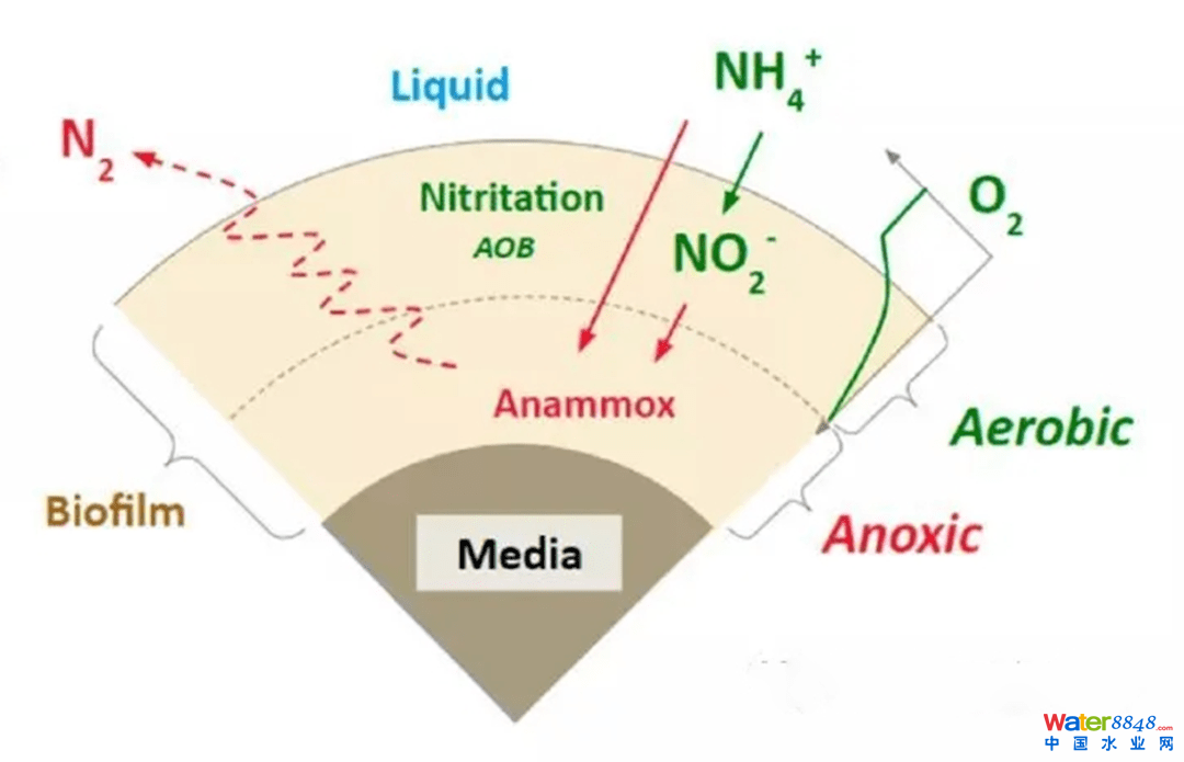 它以氨氮和亞硝酸鹽為底物完成轉(zhuǎn)換,在“合適的特定條件”下,可以減少60%能耗、100%碳源、80%污泥產(chǎn)率、90%碳排放。