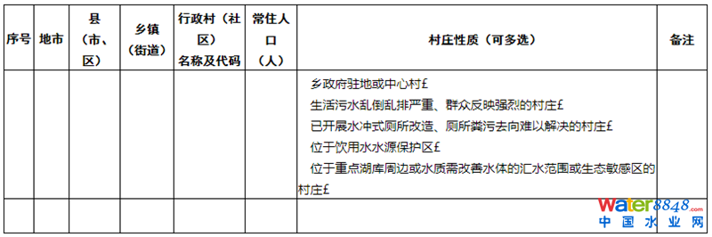 省(區(qū)、市)農(nóng)村生活污水重點治理村莊清單