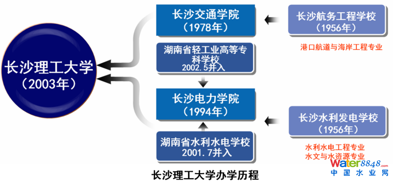 長沙理工大學(xué)水利與環(huán)境工程學(xué)院是長沙理工大學(xué)辦學(xué)歷史最久的學(xué)院之一,其辦學(xué)始于1956年交通部長沙航務(wù)工程學(xué)校的港航專業(yè)和電力工業(yè)部長沙水力發(fā)電學(xué)校的水利專業(yè)。2003年4月,經(jīng)教育部和湖南省人民政府批準(zhǔn),由原國家交通部所屬的長沙交通學(xué)院和原國家電力公司所屬的長沙電力學(xué)院合并組建成長沙理工大學(xué),隨即成立水利(河海)工程學(xué)院。2021年9月10日,水利(河海)工程學(xué)院調(diào)整組建水利與環(huán)境工程學(xué)院。