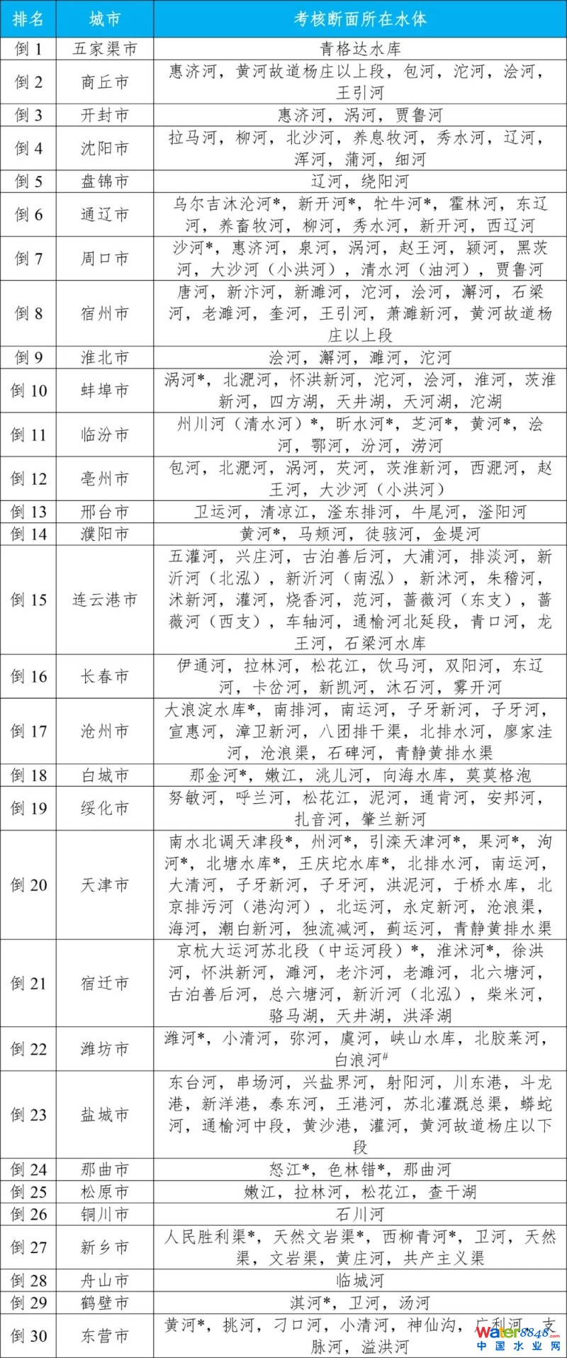 四、地級(jí)及以上城市國(guó)家地表水考核斷面排名