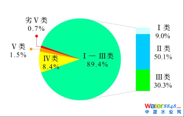圖1 1—12月全國(guó)地表水水質(zhì)類別比例