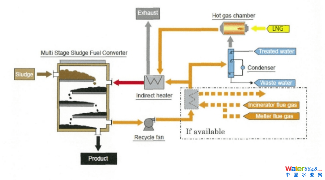 該類設(shè)備的代表性公司為日本月島機械、三菱重工,主要在日本污泥碳化燃料化工程中得到應(yīng)用。其設(shè)備及工藝如圖13、圖14所示。
