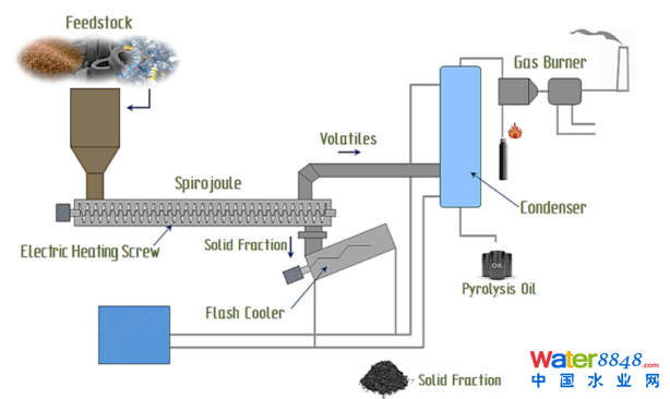 該類設(shè)備采用導(dǎo)電螺旋直接加熱污泥,使污泥產(chǎn)生熱解反應(yīng)。
