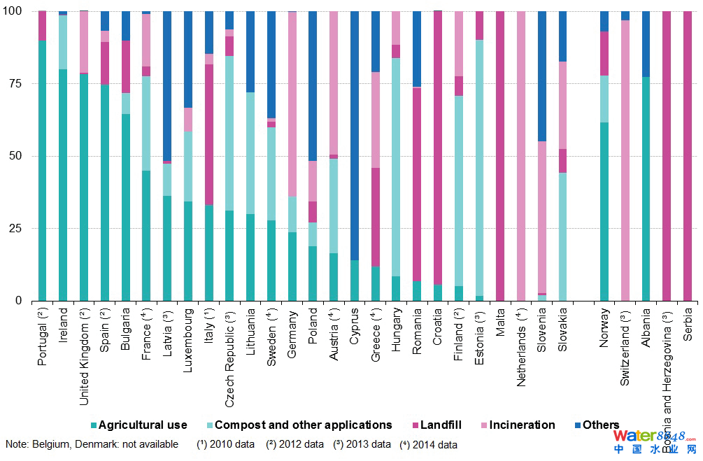 圖4 歐洲污水廠污泥處置情況(Eurostat, 2015)