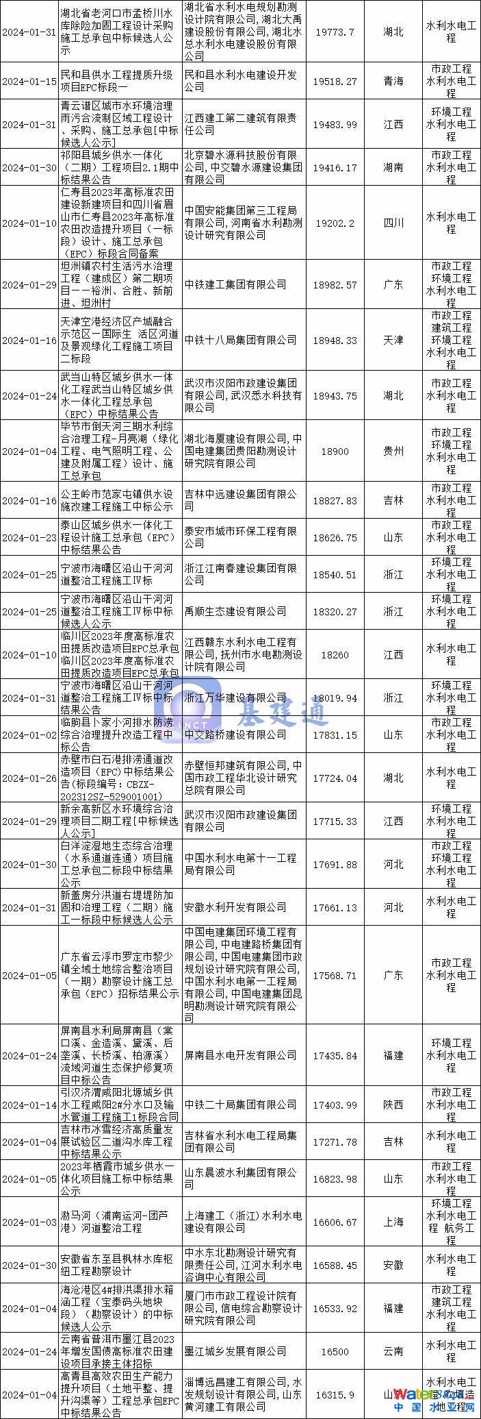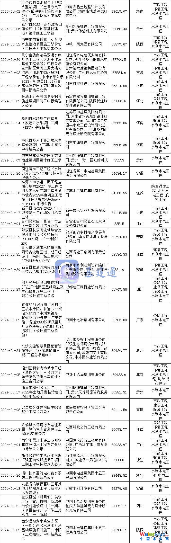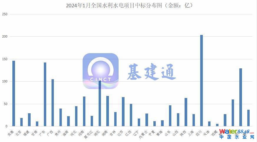 據(jù)基建通大數(shù)據(jù)統(tǒng)計,2024年1月全國水利水電項目中標額達到1690億,項目數(shù)量超1.7萬個。其中四川、廣東、安徽、浙江、廣西、湖北、河南、陜西等地區(qū)。
