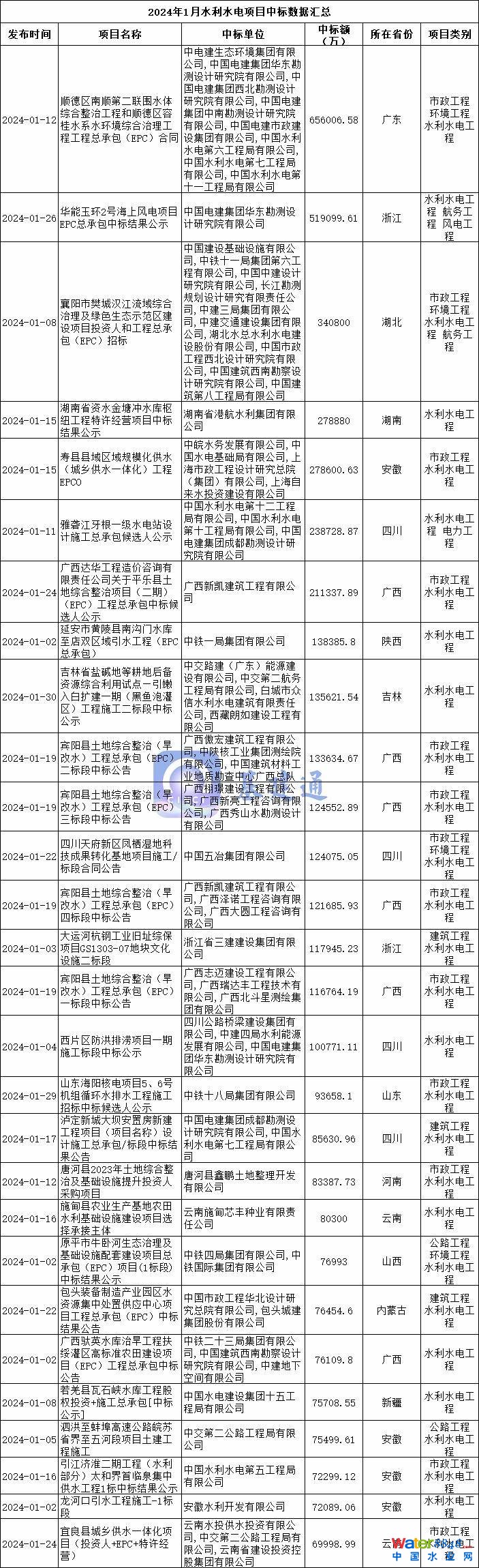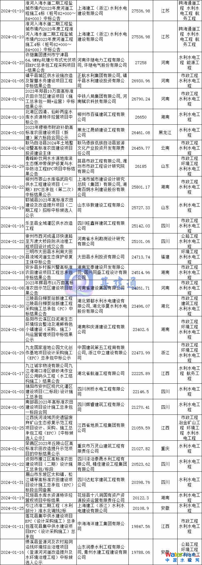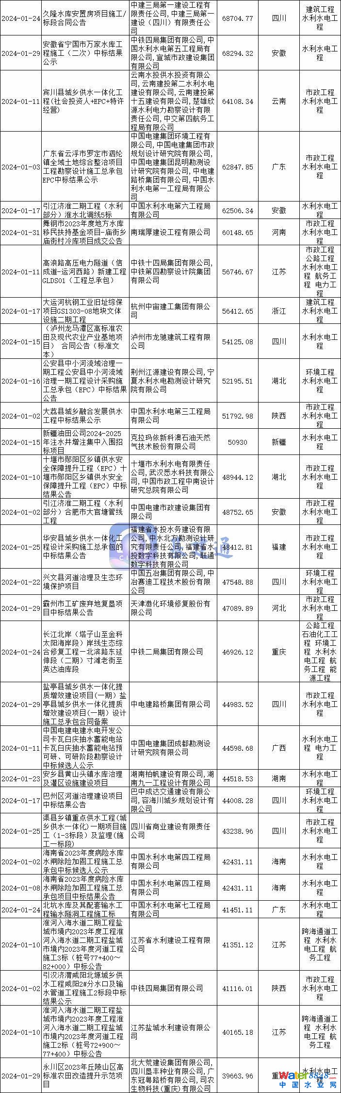 據(jù)基建通大數(shù)據(jù)統(tǒng)計,2024年1月全國水利水電項目中標額達到1690億,項目數(shù)量超1.7萬個。其中四川、廣東、安徽、浙江、廣西、湖北、河南、陜西等地區(qū)。
