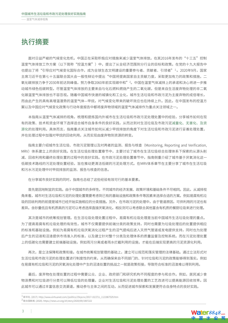 導(dǎo)讀:指南從溫室氣體減排的視角,梳理和提煉國(guó)內(nèi)外城市在生活垃圾和市政污泥處理處置中的經(jīng)驗(yàn),分享城市如何在現(xiàn)有的政策、技術(shù)和資金環(huán)境下選擇適合城市自身?xiàng)l件的良好實(shí)踐,從而達(dá)到對(duì)生活垃圾及市政污泥減量化、無(wú)害化、及資源化的處理利用。具體而言,指南重點(diǎn)關(guān)注城市如何從減少甲烷排放的角度下對(duì)生活垃圾和市政污泥進(jìn)行妥善處理處置,并在處理過(guò)程中加強(qiáng)對(duì)甲烷的回收利用,從而實(shí)現(xiàn)由廢棄物到資源的轉(zhuǎn)變。