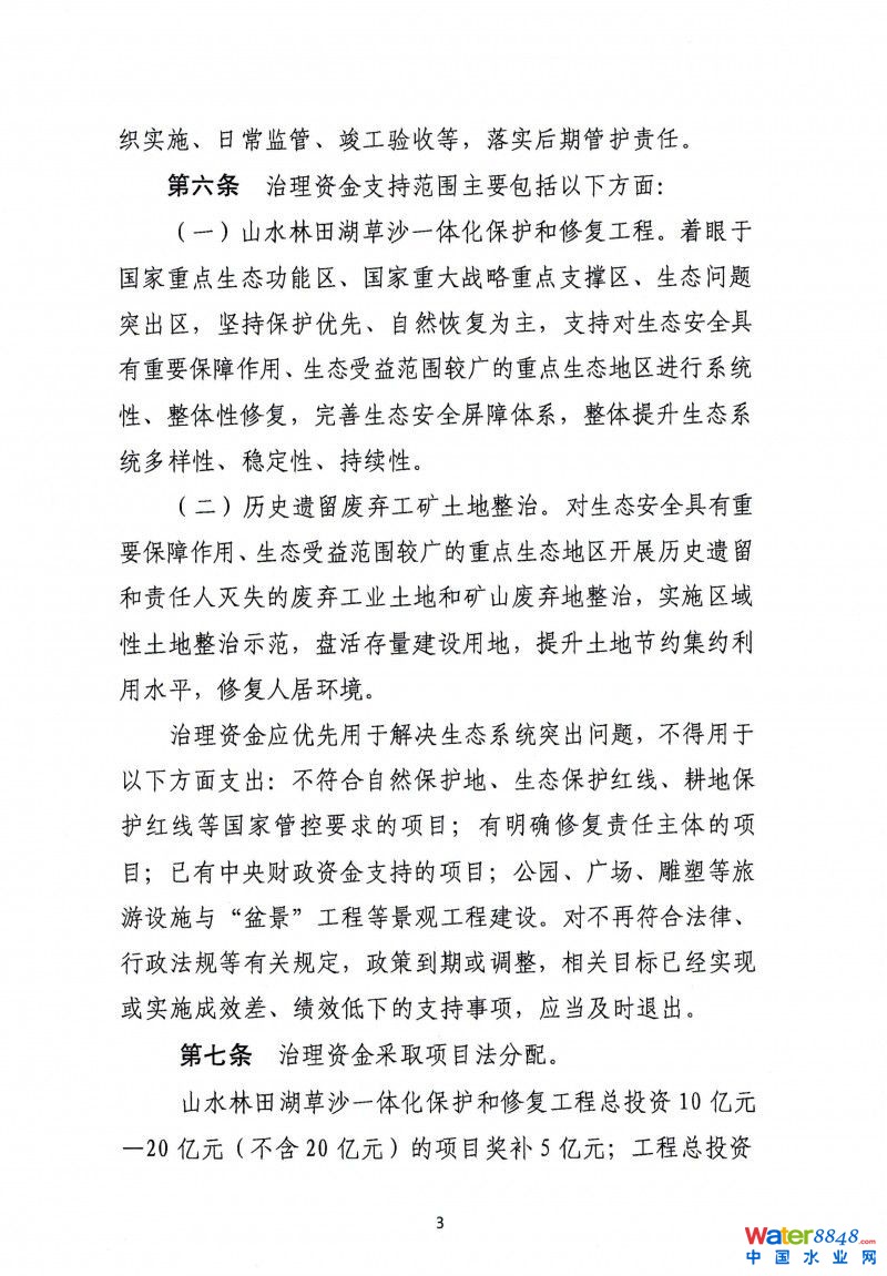 為加強重點生態(tài)保護修復治理資金管理,財政部修訂了《重點生態(tài)保護修復治理資金管理辦法》,并予以發(fā)布,治理資金支持范圍主要包括山水林田湖草沙一體化保護和修復工程以及歷史遺留廢棄工礦土地整治。