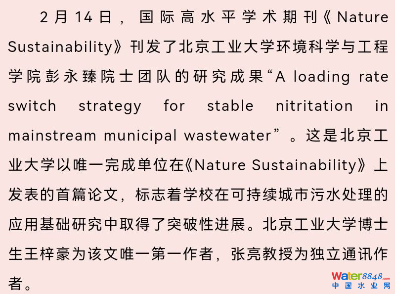 可持續(xù)城市污水處理新突破!北工大科研團(tuán)隊發(fā)表Nature子刊