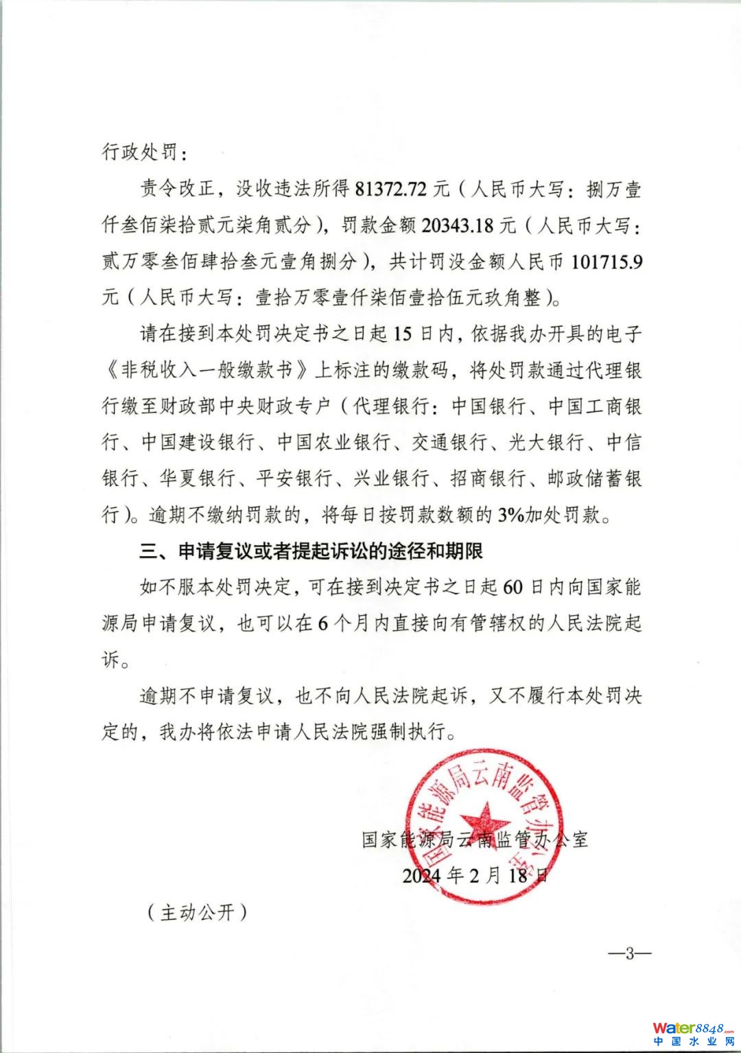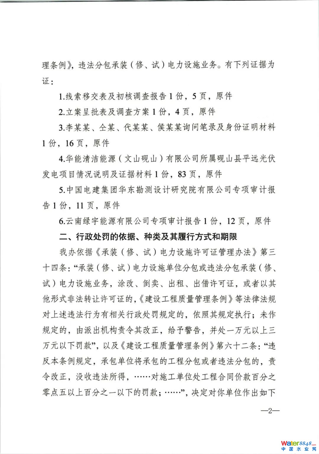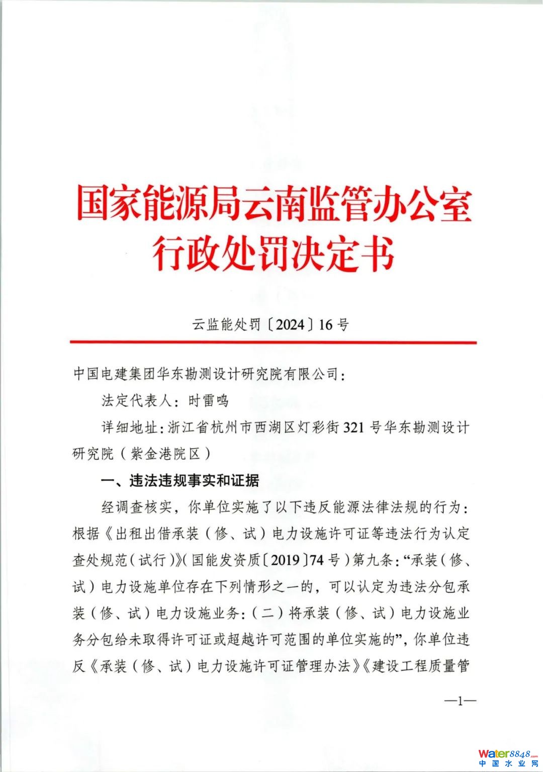 國(guó)家能源局云南監(jiān)管辦公室決定對(duì)中國(guó)電建集團(tuán)華東勘測(cè)設(shè)計(jì)研究院有限公司作出如下行政處罰: