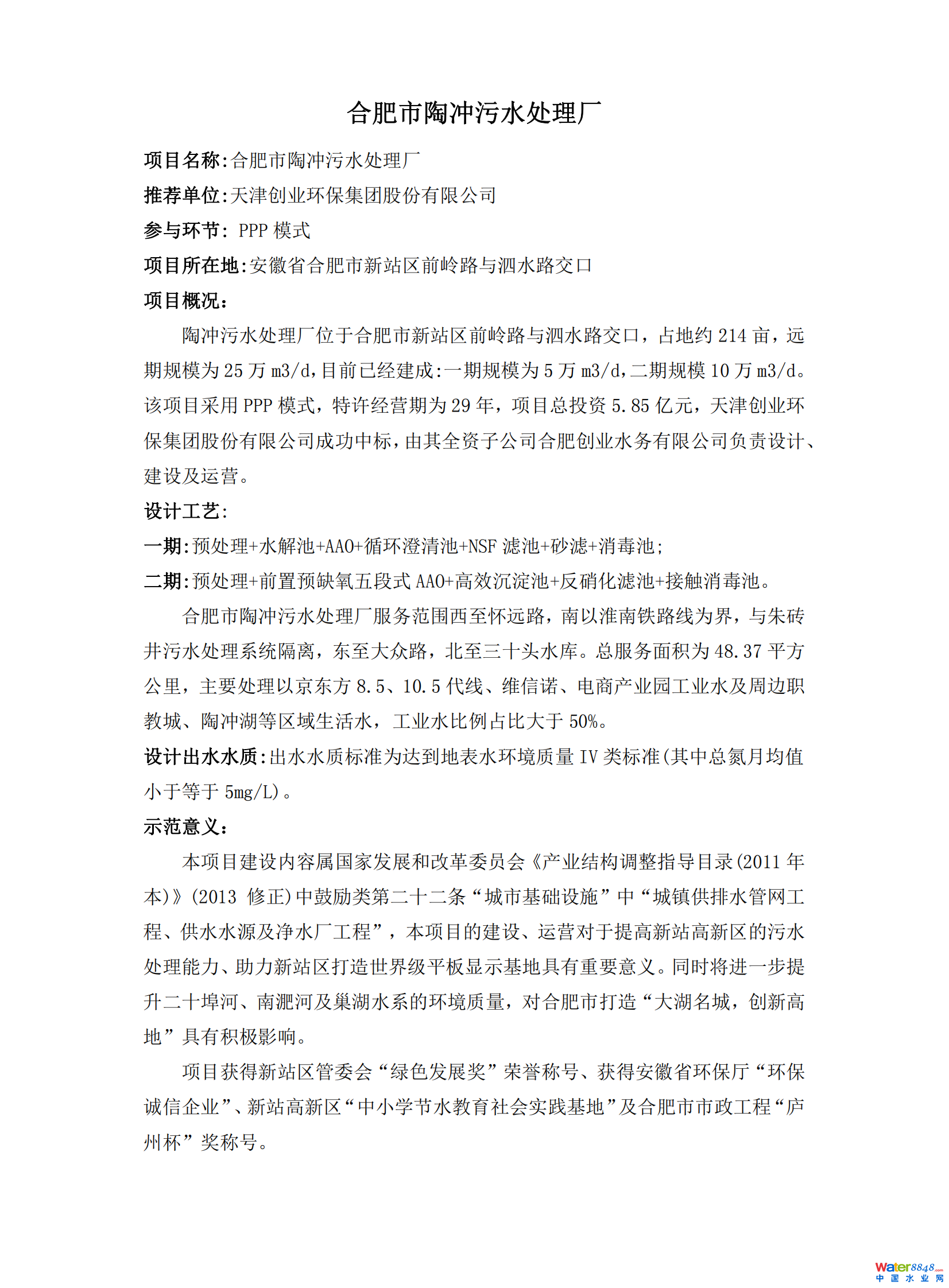 合肥市望塘污水處理廠于2018年3月28日由中節(jié)能國(guó)禎環(huán)?萍脊煞萦邢薰窘邮诌\(yùn)營(yíng),并同步開展DBO改造工程,二期污水處理系統(tǒng)自2018年6月23日開始停止進(jìn)水運(yùn)行,進(jìn)行DBO施工改造,整體改造工程于2019年5月竣工,2018年12月通過環(huán)保驗(yàn)收,一期和二期出水水質(zhì)執(zhí)行DB34中省標(biāo)標(biāo)準(zhǔn)。2019年9月2日正式轉(zhuǎn)為商業(yè)運(yùn)營(yíng)。