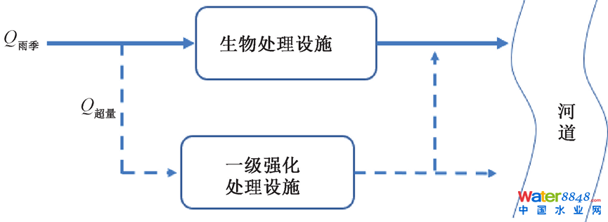 現(xiàn)階段我國大部分城鎮(zhèn)污水處理廠已經(jīng)處于飽和或超負(fù)荷狀態(tài),污水處理廠內(nèi)通常不具備擴(kuò)建或新建一級強(qiáng)化等快速處理設(shè)施的條件,即使解決了污水處理廠內(nèi)占地問題,很多城市可能還涉及辦理污水處理廠新增入河排污口的審批和許可,或?qū)υ腥牒优盼劭谶M(jìn)行調(diào)整變更等程序。