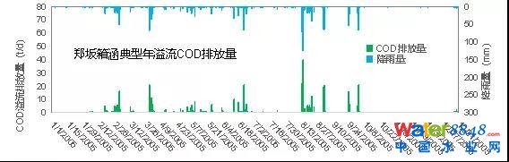 圖5 鄭坂箱涵典型年溢流COD排放量與降雨量對比