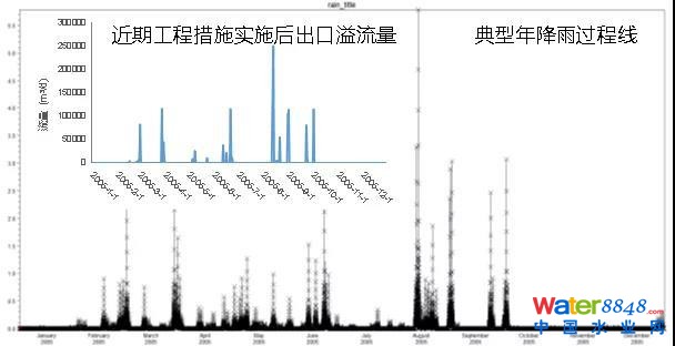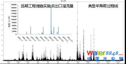 圖15 典型年降雨過程線與遠期措施溢流量對比