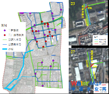 圖1 浯溪流域雨污混接位置及現(xiàn)場排查