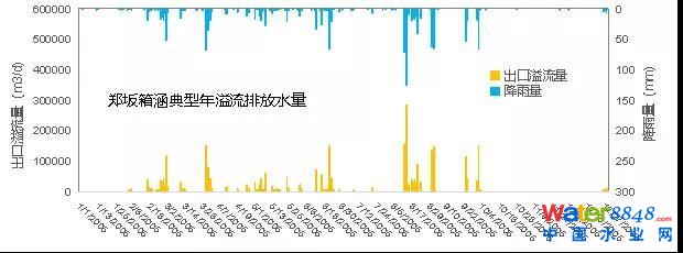圖4 鄭坂箱涵典型年溢流水量與降雨量對比