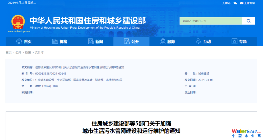 近日,住房城鄉(xiāng)建設部、生態(tài)環(huán)境部等5部門發(fā)布關于加強城市生活污水管網(wǎng)建設和運行維護的通知。