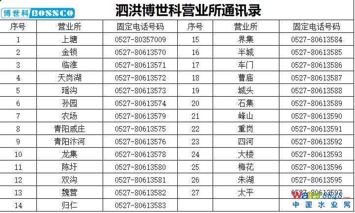 公司簡介:泗洪博世科水務(wù)有限公司成立于2015年8月,注冊資金人民幣3億元,是廣西第一家創(chuàng)業(yè)板上市公司廣西博世科環(huán)保科技股份有限公司(股票代碼:300422)與泗洪縣水務(wù)局授權(quán)的江蘇清源水務(wù)投資有限公司共同出資設(shè)立、由廣西博世科控股的“公私合作”型公司(PPP項目公司)。下屬生產(chǎn)部、技術(shù)部、綜合管理部、采購部、財務(wù)部、運(yùn)營部、稽查部、安健環(huán)質(zhì)量部及物管部九個職能部門。共有員工310人,主要擔(dān)負(fù)著泗洪縣19個鄉(xiāng)鎮(zhèn)和3個街道辦部分供水任務(wù)。目前日供水設(shè)計能力達(dá)7.5萬噸,渾水管網(wǎng)總長31公里,清水管網(wǎng)(DN300以上)306公里,供水面積約1790km²,服務(wù)人口約88萬人。自成立以來,公司擁有一個現(xiàn)代化的水質(zhì)檢測中心,確保出廠水質(zhì)100%符合國家標(biāo)準(zhǔn)。其業(yè)務(wù)發(fā)展領(lǐng)域主要包括自來水生產(chǎn)與供應(yīng);水處理系統(tǒng)工程設(shè)計、咨詢及設(shè)備安裝、調(diào)試;涵蓋環(huán)保領(lǐng)域內(nèi)的技術(shù)服務(wù)、技術(shù)咨詢設(shè)計、施工、安裝與維護(hù)為一體的綜合性企業(yè)。