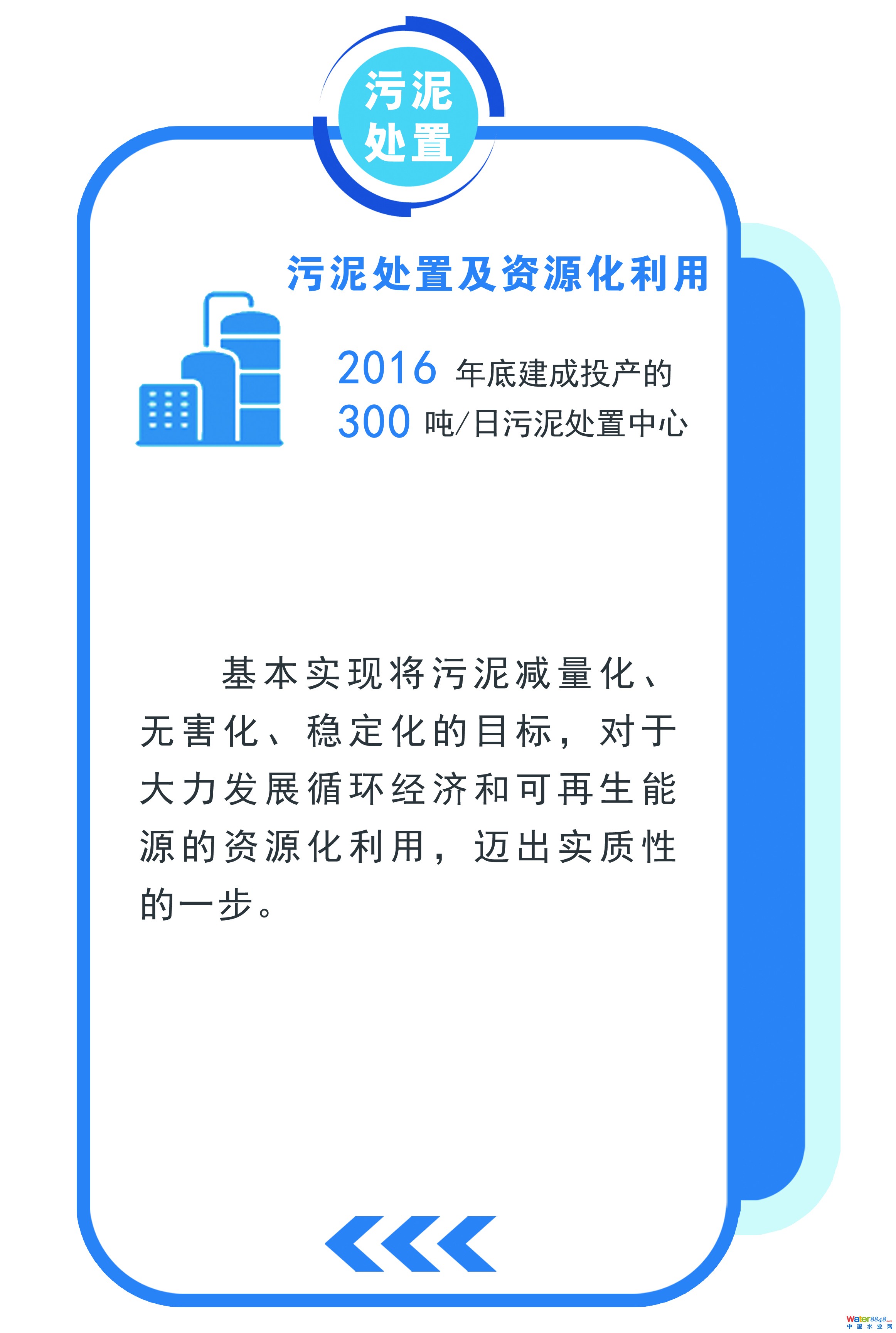 污泥處置及資源化利用 Sludge Disposal And Resource Utilization   2016年底建成投產(chǎn)的300噸/日污泥處置中心,基本實現(xiàn)將污泥減量化、無害化、穩(wěn)定化的目標(biāo)
