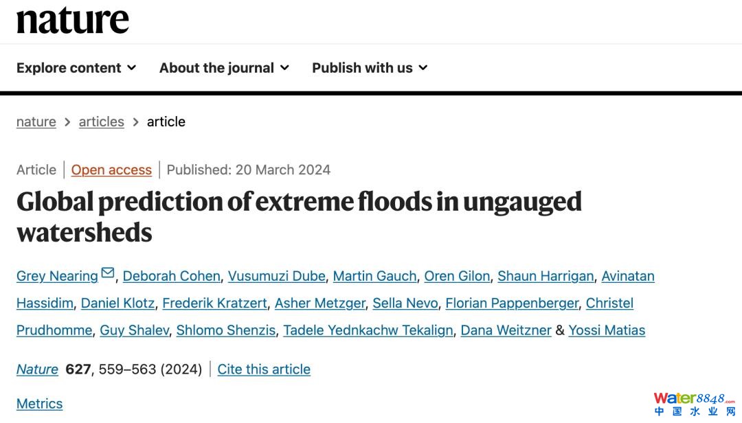 相關研究論文以“Global prediction of extreme floods in ungauged watersheds”為題,已發(fā)表在權威科學期刊 Nature 上。