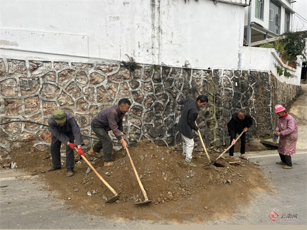 這幾天,在雞街鄉(xiāng)麻栗山村也是一派熱火朝天的勞動(dòng)場(chǎng)面,當(dāng)?shù)卮迕裾诜e極鋪設(shè)排污管道,鋤地、和泥、清運(yùn)物資,現(xiàn)場(chǎng)忙中有序。