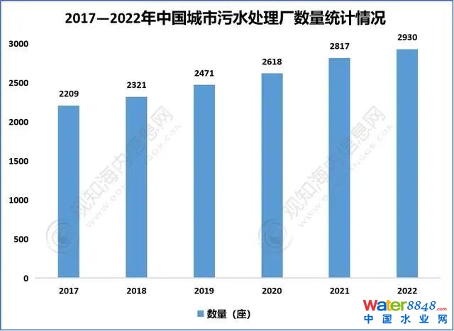 2017—2022年中國城市污水處理廠數(shù)量統(tǒng)計情況