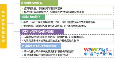 對于城市排水管理的發(fā)展,必然也需要依托互聯(lián)網(wǎng)和物聯(lián)網(wǎng)的技術(shù),建立信息化、智能化、一體化的管理平臺,促使“智慧排水”更加成熟。為實(shí)現(xiàn)這一目標(biāo),首先就是要做排水動(dòng)態(tài)信息的收集,即需要建立“排水監(jiān)測一張網(wǎng)”。