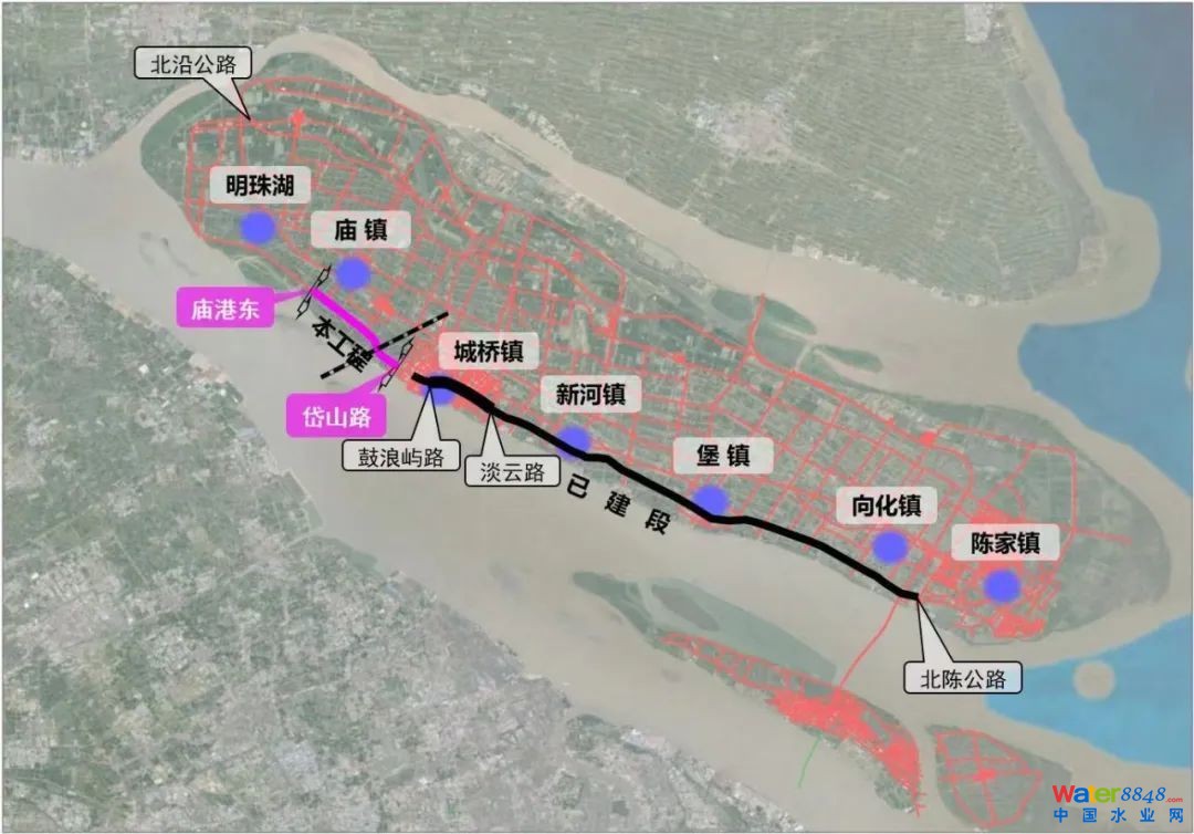 崇明大道二期道路新建工程全長約10.05公里,道路等級為二級公路,紅線寬度40米,其中元六公路以東路段,中分帶預(yù)留遠(yuǎn)期中運(yùn)量交通或公交專用實(shí)施條件。預(yù)計(jì)于2026年底基本建成。