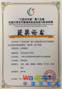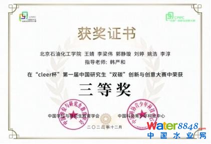 團(tuán)隊以滿足國家對污水廠出水水質(zhì)不斷提高的要求為目的,參加了各種創(chuàng)新創(chuàng)業(yè)類的比賽。并以比賽為契機(jī)打磨項目,同時也借助比賽的大平臺讓相關(guān)領(lǐng)域的專家了解他們的項目。取得了“六百光年杯”第十五屆全國大學(xué)生節(jié)能減排社會實踐與科技競賽三等獎以及“cleer杯”第一屆中國研究生“雙碳”創(chuàng)新與創(chuàng)意大賽三等獎的好成績。團(tuán)隊在一次次的比賽中更加團(tuán)結(jié),項目也因此更加完善。
