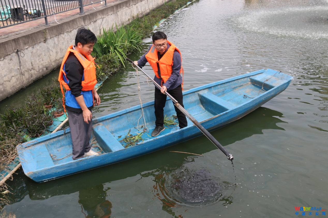 揭榜制團(tuán)隊(duì)現(xiàn)場采集黑臭底泥樣品(右一為楊旭楠博士)