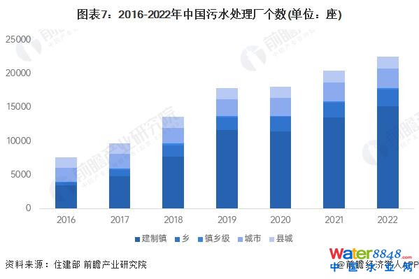 據(jù)住建部統(tǒng)計數(shù)據(jù),2022 年,我國污水處理廠達(dá)到 22470 座,同比增長 10.12%; 其中,建制鎮(zhèn)共有污水處理廠約 1.52 萬座,城市、縣城分別有污水處理廠 2894 座、1801 座。