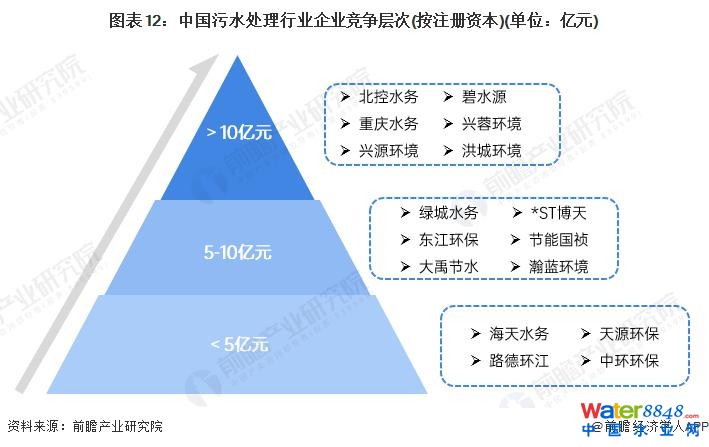 目前,我國污水處理行業(yè)市場參與者眾多,主要參與者有跨國水務(wù)集團、大型國有企業(yè)以及民營企業(yè),從企業(yè)規(guī)模來看,污水處理行業(yè)企業(yè)規(guī)模相對較大,企業(yè)注冊資本較高,其中,注冊資本在 10 億元以上的大型企業(yè)有北控水務(wù)、碧水源、興蓉環(huán)境、首創(chuàng)環(huán)保等 ; 注冊資本在 5-10 億元之間的企業(yè)有綠城水務(wù)、節(jié)能國禎、大禹節(jié)水等 ; 注冊資本小于 5 億元的企業(yè)有天源環(huán)保、中環(huán)環(huán)保等。從企業(yè)競爭力來看,大型國有上市企業(yè)如北控水務(wù)、首創(chuàng)股份、興蓉環(huán)境等,憑借雄厚的資本實力、豐富的社會資源等優(yōu)勢,占據(jù)行業(yè)主導(dǎo)地位,在全國范圍內(nèi)積極開拓?fù)屨际袌,是跨國水?wù)企業(yè)強力的競爭對手。