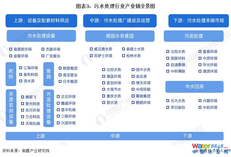 在上游領(lǐng)域,污水處理設(shè)備及配套材料供應(yīng)代表企業(yè)有海普歐環(huán)保、杰豪環(huán)保、清水源、泰和科技、賽默飛、先和環(huán)保、正達(dá)環(huán)保等 ; 在中游污水處理設(shè)施建設(shè)與運營領(lǐng)域,代表企業(yè)有北控水務(wù)、首創(chuàng)環(huán)保、重慶水務(wù)、碧水源、國中水務(wù)、博天環(huán)境、瀚藍(lán)環(huán)境、金達(dá)萊、大禹節(jié)水等 ; 在下游市場,代表企業(yè)有啟迪桑德、國聯(lián)環(huán)科、中科博聯(lián)、光大水務(wù)、興蓉環(huán)境、孚日股份、中拓環(huán)境等。