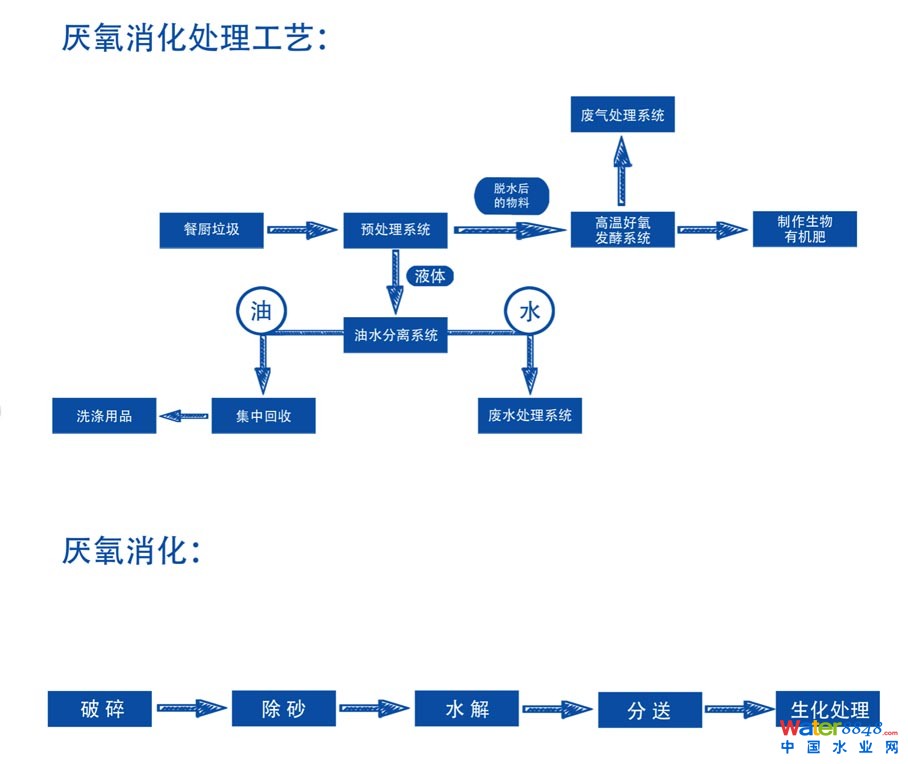 餐廚垃圾通過預(yù)處理被分為雜質(zhì)、有機渣料、廢水、廢油脂。預(yù)處理具有雜質(zhì)去除率高、油脂提取率高、有機質(zhì)損失率低等特點。根據(jù)實際情況優(yōu)先考慮采用技術(shù)成熟、效率高、運行可靠的設(shè)備,堅持技術(shù)的先進性、工藝的可行性和經(jīng)濟性相結(jié)合的原則。目前國內(nèi)常用的兩種餐廚垃圾處理工藝,即厭氧消化、微生物處理技術(shù)。