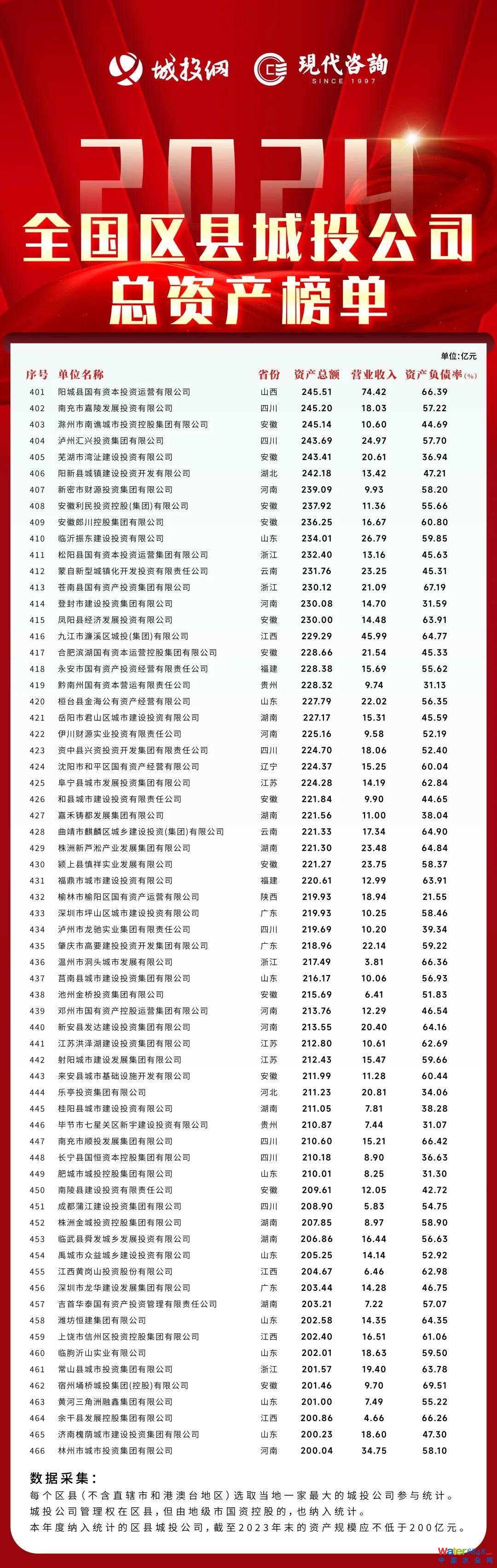 2024全國(guó)區(qū)縣城投公司總資產(chǎn)榜單(401-466)