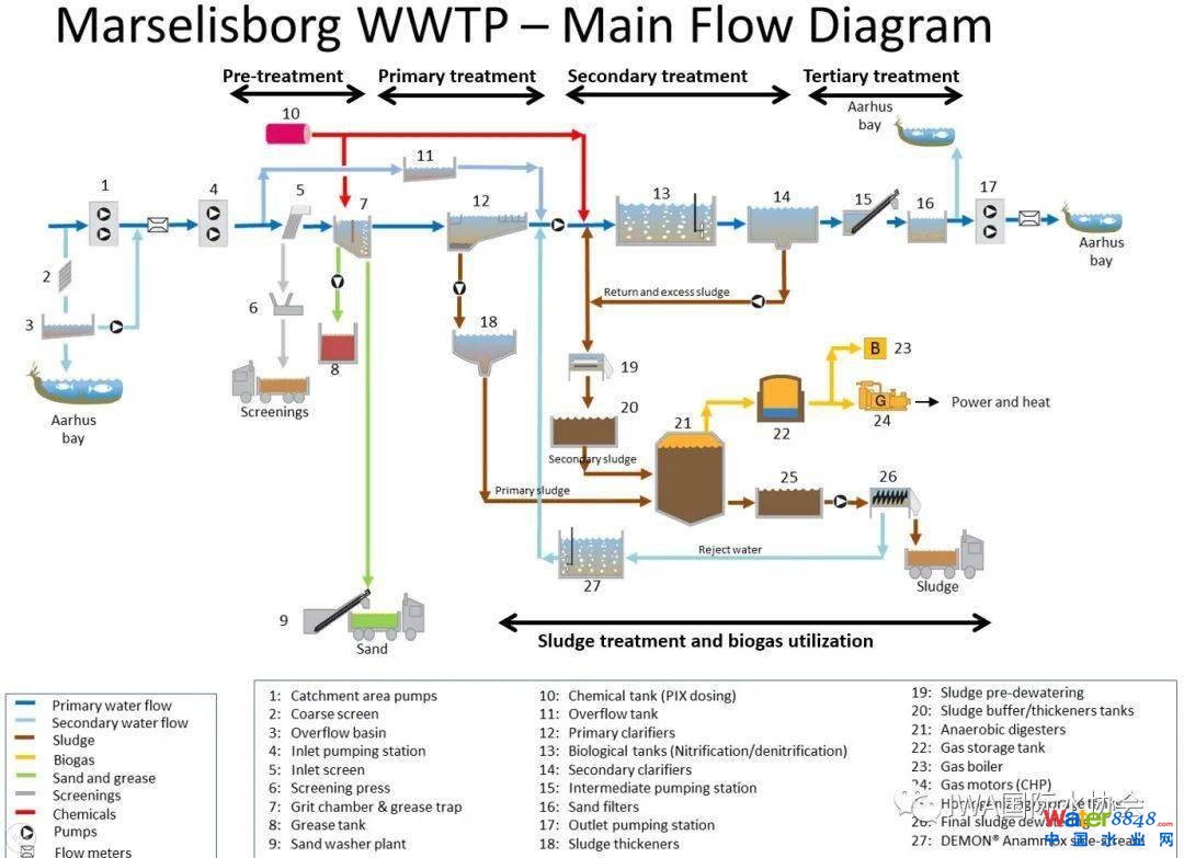 圖2.Marselisborg污水處理廠工藝流程圖 | 圖源:janeschipma.bloggersdelight.dk