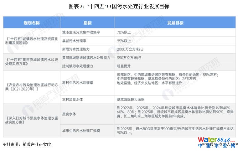 2021 年 6 月,國家發(fā)改委、住建部聯(lián)合印發(fā)《" 十四五 " 城鎮(zhèn)污水處理及資源化利用發(fā)展規(guī)劃》,提出了 " 十四五 " 時期城鎮(zhèn)污水處理及資源化利用的主要目標、重點建設(shè)任務(wù),以指導(dǎo)各地有序開展城鎮(zhèn)污水處理及資源化利用工作。2022 年 1 月,生態(tài)環(huán)境部聯(lián)合五部門印發(fā)《農(nóng)業(yè)農(nóng)村污染治理攻堅戰(zhàn)行動方案 ( 2021-2025 年 ) 》,聚焦農(nóng)村污水治理、黑臭水體整治等重點工程,為實現(xiàn)鄉(xiāng)村生態(tài)振興提供有力支撐。" 十四五 " 期間污水處理行業(yè)發(fā)展目標分析如下: