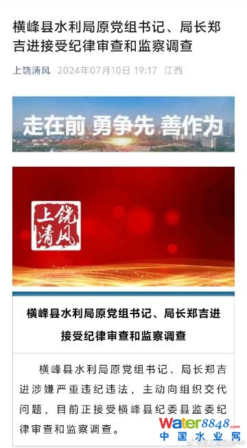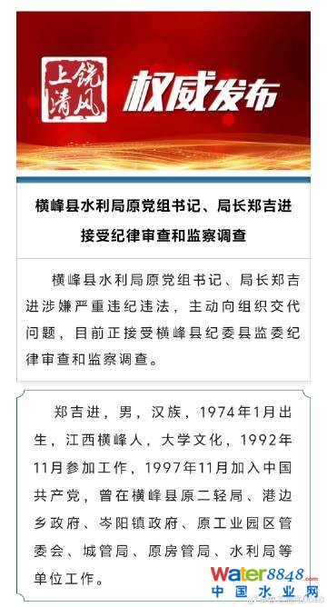 【江西省橫峰縣水利局原黨組書記、局長鄭吉進(jìn)接受紀(jì)律審查和監(jiān)察調(diào)查】