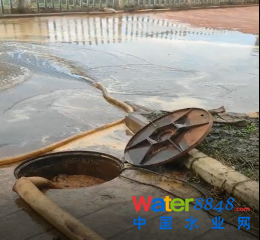 大量冷凝水與廢水混合后經(jīng)總排口外排 消防栓取水稀釋沉淀池旁的地面污水