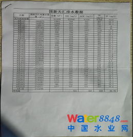 國新天匯排入小倉房污水處理廠的進(jìn)水監(jiān)測數(shù)據(jù)