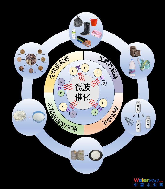 圖1.微波驅(qū)動熱催化固體廢棄物化學解聚