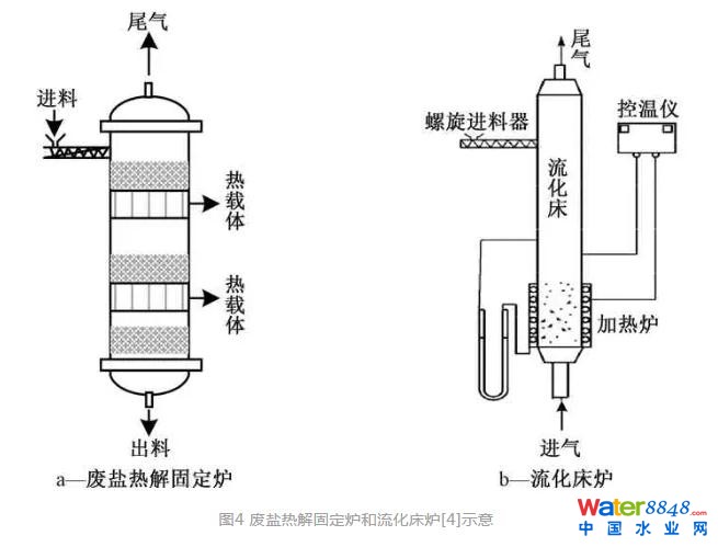 我國各行業(yè)廢鹽的產(chǎn)生量尚無確切的統(tǒng)計數(shù)據(jù)。李唯實等認(rèn)為,生產(chǎn)1 t農(nóng)藥產(chǎn)品平均產(chǎn)生1 t左右的廢鹽,其主要來源于農(nóng)藥中間體和原藥的生產(chǎn)過程,因此農(nóng)藥廢鹽年產(chǎn)生量可達到100多萬t。農(nóng)藥廢鹽中有機物含量較多,主要為鹵代烴類、苯系物類復(fù)雜成分,所含有機物沸點和熱分解溫度均在200~600 ℃內(nèi)。印染行業(yè)的基本生產(chǎn)原料包括萘系、蒽醌、苯系、苯胺及聯(lián)苯胺類化合物。這些物質(zhì)在加工生產(chǎn)過程中易和金屬、鹽類等物質(zhì)發(fā)生螯合,使得染料廢水中含高濃度鹽、重金屬,同時存在COD高等問題,從而造成副產(chǎn)廢鹽中有機物稠環(huán)類有機物含量高,同時還可能伴有重金屬。在水處理過程中,高鹽廢水蒸發(fā)處理也會間接產(chǎn)生廢鹽。此類廢鹽在前置水處理環(huán)節(jié)中多已經(jīng)過有機物氧化分解工序,因此殘留有機物多為難降解有機物,去除難度較大。 除此之外,石油化工、煤化工、氯堿工業(yè)、冶金等行業(yè)也產(chǎn)生廢鹽,但有機物含量相對較低,處理難度較小。煤化工行業(yè)中廢鹽主要來自除鹽水和循環(huán)水生產(chǎn)環(huán)節(jié)引入的鹽分,成分主要為NaCl和Na2SO4等簡單鹽類,不含有機物。但依據(jù)《現(xiàn)代煤化工建設(shè)項目環(huán)境準(zhǔn)入條件(試行)》規(guī)定,該類廢物暫時按照危險廢物進行管理。氯堿工業(yè)上用電解飽和NaCl溶液的方法來制取NaOH、Cl2和H2,并以之為原料生產(chǎn)一系列化工產(chǎn)品。此類鹽泥產(chǎn)量大,主要成分為NaCl,基本不含有機物,可回收利用價值高。 2.工業(yè)廢鹽中有機物特性 1)成分復(fù)雜,難降解有機物居多。 由于工業(yè)廢鹽來源眾多,導(dǎo)致其組成成分相對復(fù)雜,表觀性狀亦有差異。圖1為3種來源的廢鹽,表觀白度和性狀明顯不同。劉錚等認(rèn)為,各行業(yè)產(chǎn)生的廢鹽組分差異大、特征不穩(wěn)定是阻礙其有效處置的主要原因。表2列舉了幾種農(nóng)藥廢鹽的工業(yè)和元素分析數(shù)據(jù)?芍7種廢鹽(HWS-1~HWS-7)中NaCl含量為40%~90%,其他無機物含量為1%~15%,有機物含量為1%~25%。從工業(yè)分析可看出,揮發(fā)分和灰分含量較高,固定碳含量較低。廢鹽中有機物成分大多為難降解有機物,含量差別較大。 2)沸點和熱分解溫度相對較低。 雖然廢鹽中的有機組分成分復(fù)雜,性質(zhì)存在差異,但有機物的沸點和熱分解溫度集中在200~500 ℃。雖然不同類型廢鹽的熱解/燃燒特性存在明顯差異,但利用有機物高溫易揮發(fā)或熱解成易揮發(fā)性物質(zhì)的特點,可采用合適的設(shè)備和工藝在中低溫區(qū)將有機物從鹽分中除去,達到無害化處理的目的。 02 工業(yè)廢鹽有機物脫除技術(shù) 1.有機物熱解碳化技術(shù) 有機廢鹽熱解碳化是在低于無機鹽熔點溫度和控氧氣氛條件下,對廢鹽中有機物進行分解碳化,使廢鹽中有機物一部分熱解為揮發(fā)性氣體,另一部分變?yōu)楣虘B(tài)有機碳并形成灰分的工藝,其基本流程如圖2所示,該過程的反應(yīng)溫度一般控制在300~800 ℃。李唯實等指出熱處理法工藝簡單,能有效去除有害物質(zhì)并可回收資源如活性炭,但不同的熱處理條件和設(shè)備會導(dǎo)致固體廢物的熱處理過程和產(chǎn)物差異較大。 根據(jù)有機物含量不同,熱解碳化工藝可分為一步熱解碳化和分級臨界碳化技術(shù)。胡衛(wèi)平等采用一步熱解,工藝簡單有效,所需熱量較少,但有機物去除效率不高。長鏈有機物和芳環(huán)、稠環(huán)和雜環(huán)有機物常常發(fā)生聚合結(jié)焦反應(yīng),不能徹底分解,這導(dǎo)致廢鹽中類似焦油的有機聚合物含量上升,毒性不減。張繼宇在此基礎(chǔ)上開發(fā)了分級碳化工藝,針對每種工業(yè)廢鹽所含有機物多樣性及其理化特性不同等特點,設(shè)置若干級分解碳化爐(圖3)。利用該工藝處理某農(nóng)藥生產(chǎn)企業(yè)的副產(chǎn)工業(yè)廢鹽,所得產(chǎn)品為NaCl含量98.9%,有機物含量0.003%,其他物質(zhì)為1.097%。 熱解碳化工藝的反應(yīng)系統(tǒng)主要包括進料系統(tǒng)、熱解系統(tǒng)、煙氣處理系統(tǒng)和鹽回收系統(tǒng)。其中,熱解系統(tǒng)的反應(yīng)器類型會對有機雜質(zhì)的去除、傳熱傳質(zhì)、反應(yīng)效率和成本產(chǎn)生重要影響。目前國內(nèi)外研究中反應(yīng)器類型是固定床和流動床。固定床反應(yīng)器主要用于氣固相反應(yīng),與流動床相比,該類型反應(yīng)器易于設(shè)計、管理和維護,反應(yīng)過程中催化劑機械損耗小,但其局限性在于裝置的傳質(zhì)傳熱性能差(圖4a)。由于廢鹽的特殊性,固定床熱解常常面臨碳化不均和設(shè)備黏結(jié)的問題。 流化床反應(yīng)器也是熱解反應(yīng)常用的反應(yīng)器之一(圖4b),其傳質(zhì)、傳熱性能較好,同時反應(yīng)器中的流態(tài)物質(zhì)提供了較大比表面積,能使熱量與原料充分混合。廢鹽的流化提高了傳熱傳質(zhì)效果,從而提高了有機物的燃盡率。王鳴彥等認(rèn)為,該方法中物料與熱空氣呈噴動流態(tài)進行熱交換,使物料深度碳化,碳化鹽純度提高;碳化溫度和鹽的表面軟化易控制,可避免物料黏結(jié),有利于連續(xù)化生產(chǎn);但由于特殊的流化需求,該方法將產(chǎn)生大量的煙氣,可能增加
